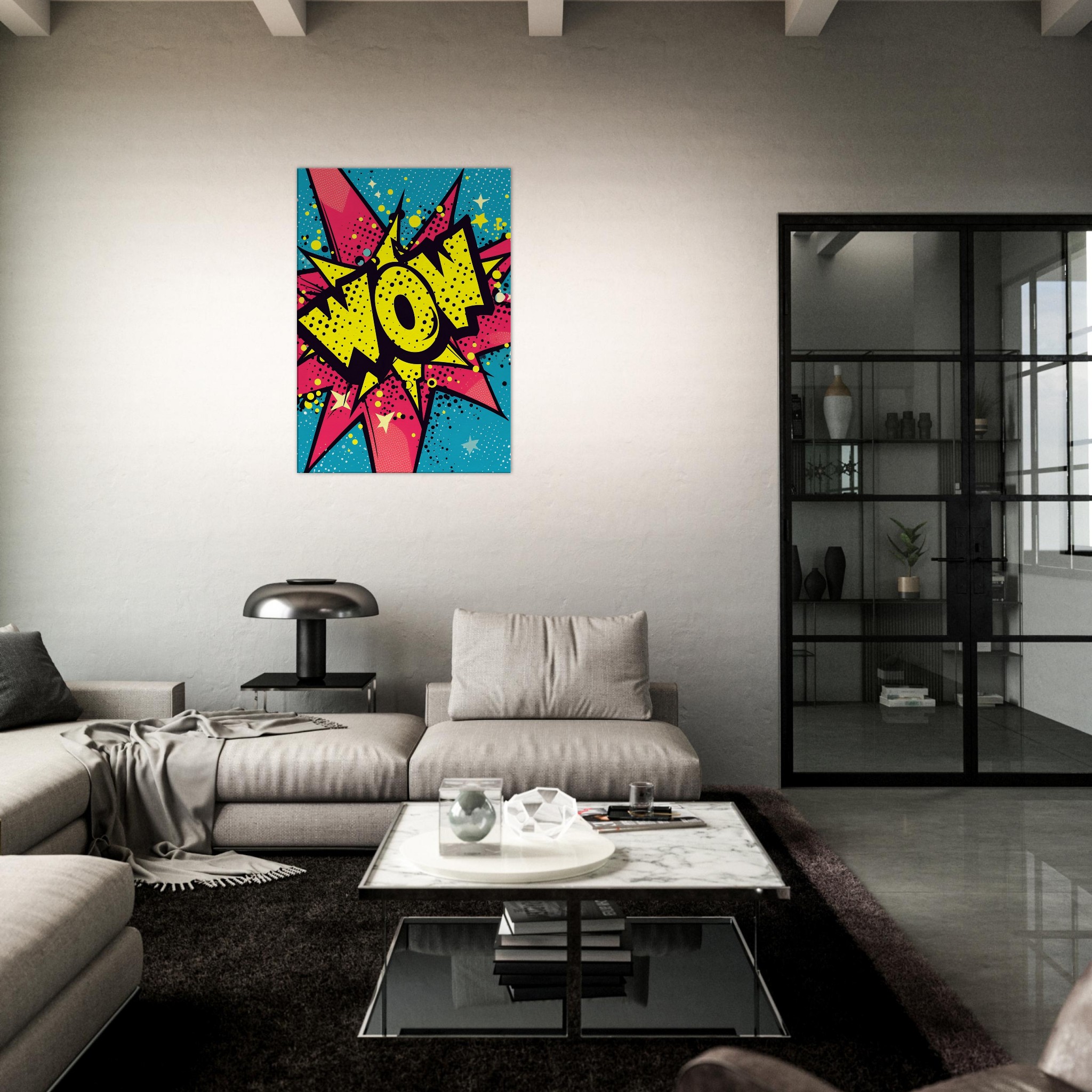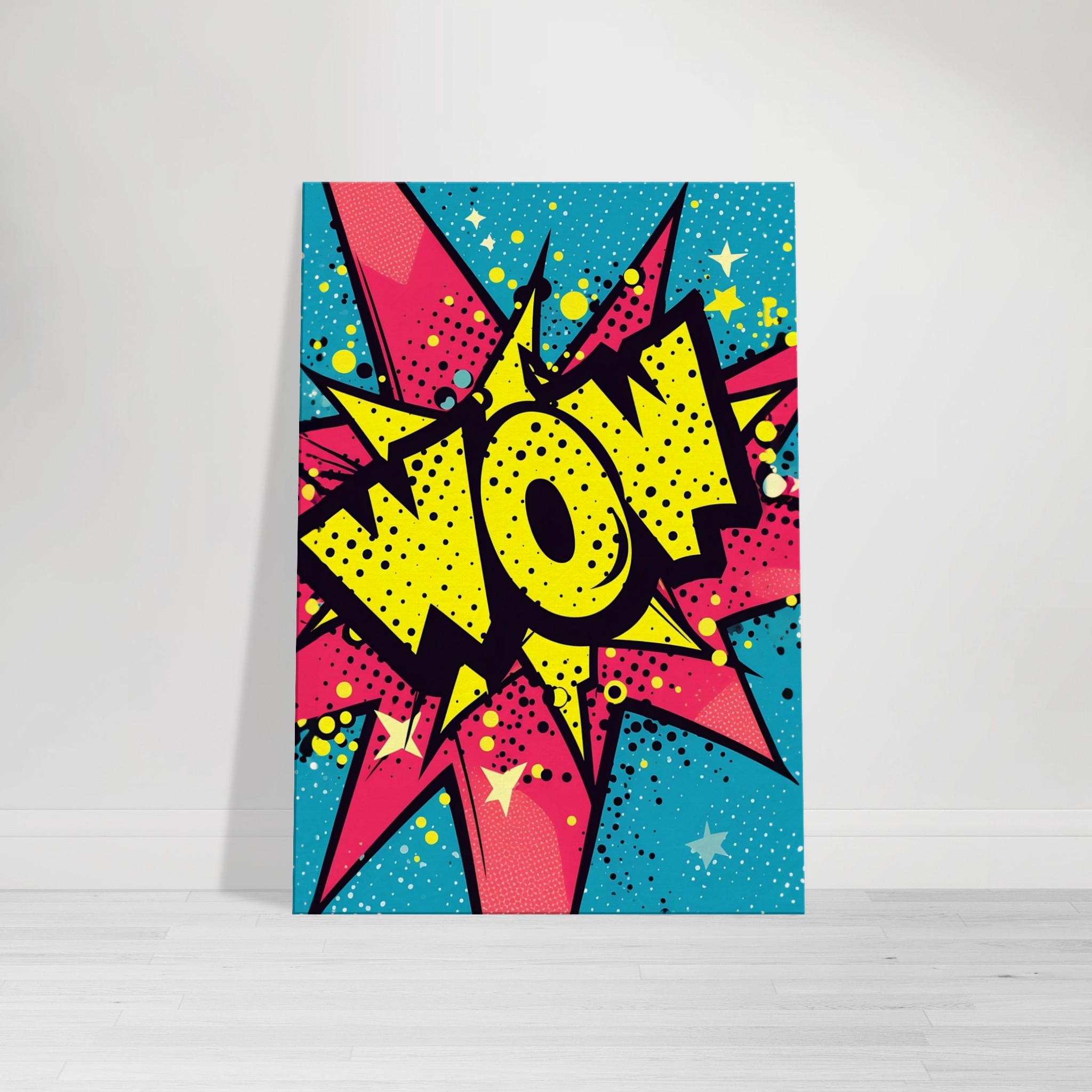 Pop-Art Ausruf ist eine lebendige Hommage an die Pop-Kultur, die durch das klassische Comicbuch-Design hervorsticht. Diese Leinwand ist perfekt, um einem Raum einen Funken Spaß und Jugendlichkeit zu verleihen.