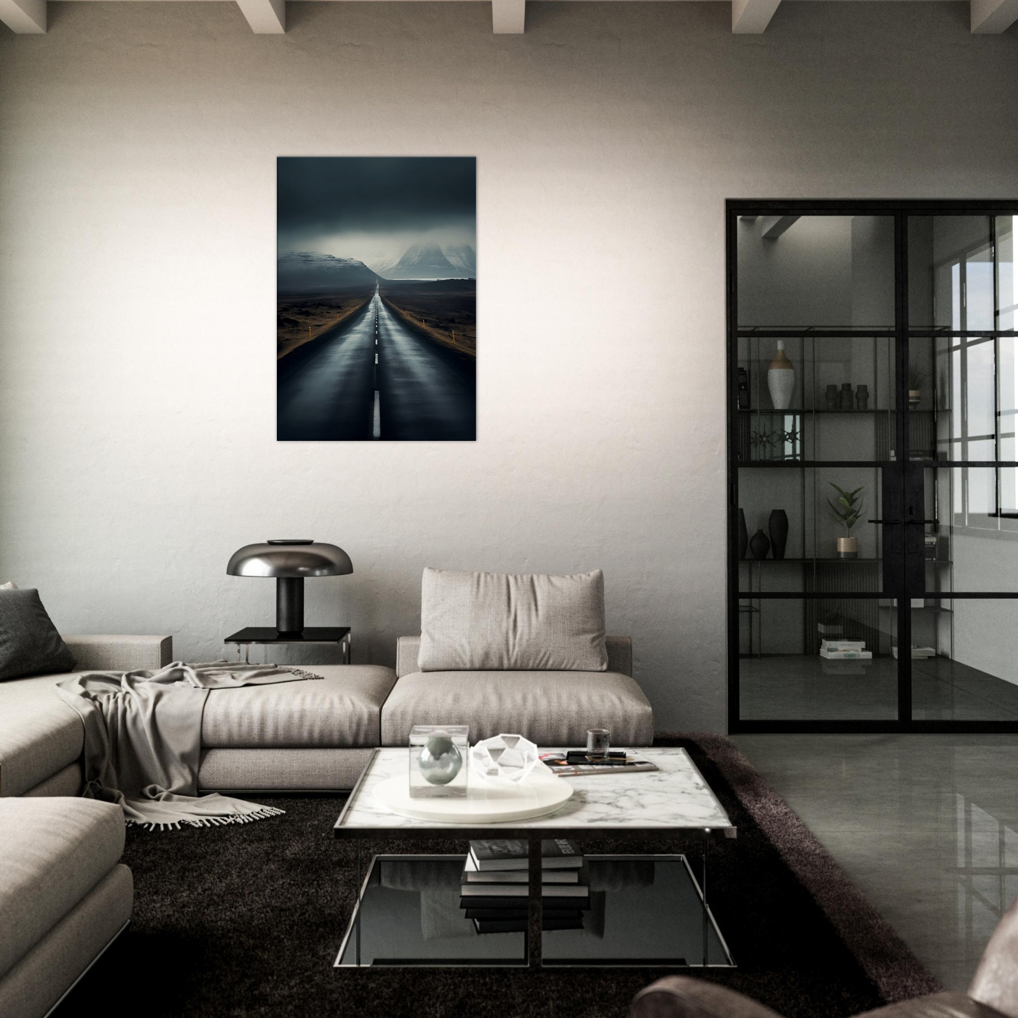 Reise zum Horizont zeigt eine beeindruckende Straße in Island, die den Betrachter in die Ferne führt. Das Kunstwerk verkörpert Abenteuerlust und die Sehnsucht nach Entdeckungen.
